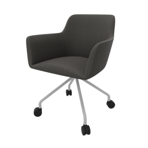 Idéales pour une utilisation dans les espaces d'attente, les salles de réunion et de conférence ou d'autres environnements de bureau. Alliant à merveille praticité et élégance artistique, les chaises de la série City sont idéales comme sièges visiteurs. piètement 4 pieds avec 4 roulettes en tube rond-acier chromé. équipé de avec accoudoirs rigides. coque d’assise en mousse PU en anthracite.