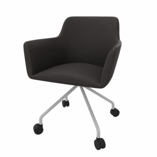 Idéales pour une utilisation dans les espaces d'attente, les salles de réunion et de conférence ou d'autres environnements de bureau. Alliant à merveille praticité et élégance artistique, les chaises de la série City sont idéales comme sièges visiteurs. piètement 4 pieds avec 4 roulettes en tube rond-acier chromé. équipé de avec accoudoirs rigides. coque d’assise en mousse PU en marron foncé.