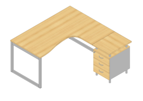 "description": "1 bureau, 1 caisson à poser, table HxlxP 730x1600x1650mm, Piètem. semelles aluminium-argenté, suivant à gauche, chêne",