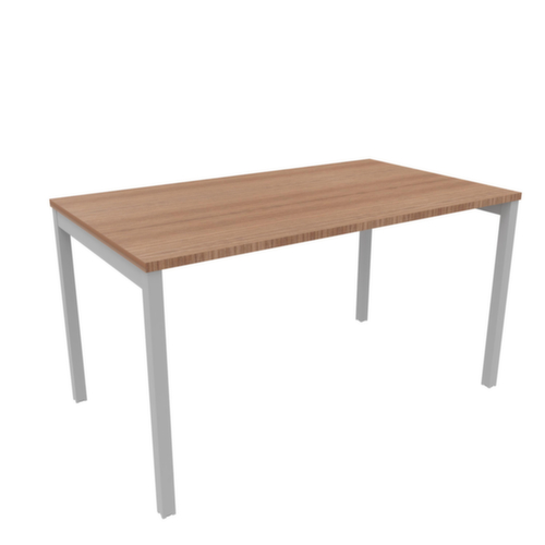 "metaDescription": "Quadrifoglio Table de rallonge Practika pour bureau avec piètement 4 pieds, largeur x profondeur 800 x 600 mm, plaque noyer Canaletto - p. 4 pieds, HxlxP 730x800x600mm, panneau noyer Canaletto, 2 pieds aspect aluminium",