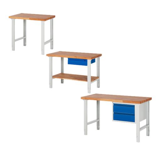 "description": "RAL7035/RAL5010, HxlxP 790-1140x2000x700mm, plateau hêtre, force 750kg, 4 pieds, équipement : 2 tiroirs, verrouil. centralisé, RAL7035, face avant RAL5010",