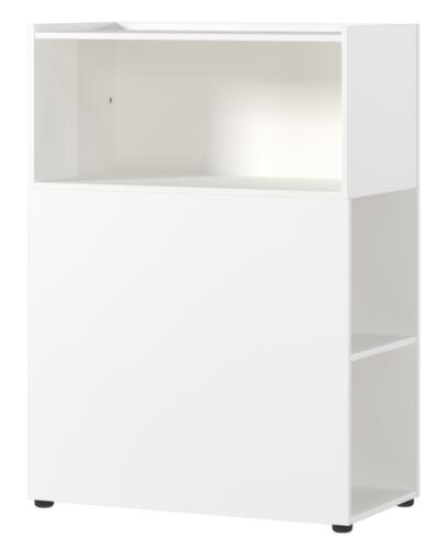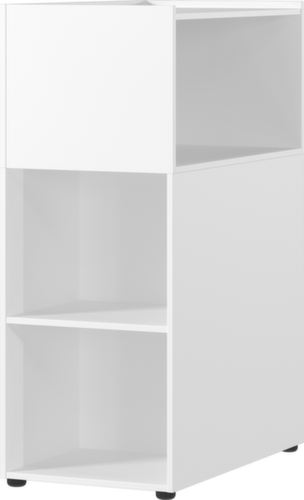 utilisation sur 3 côtés – ce panneau de séparation à poser librement offre des espaces de travail individuels, plus d’intimité, mais aussi des espaces de rangement à accès direct. structure en aggloméré avec revêtement mélaminé, facile d’entretien. corps en blanc, Une bande de chant ABS résistant aux chocs protège tous les bords de fissures et d'éclatements inesthétiques. soubassement patins en plastique.