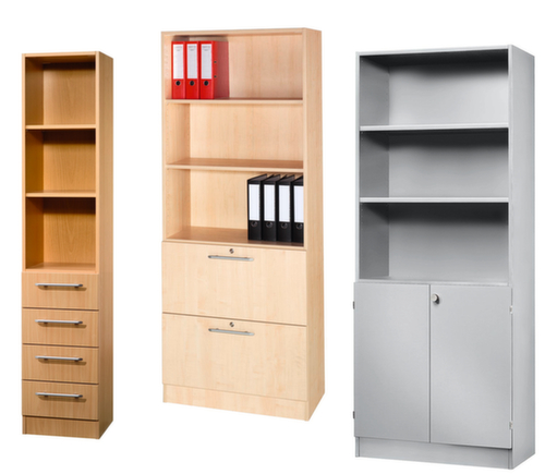 "title": "Combinaison d'étagères Sina et de tiroirs HR, 3 compartiments de rayonnage, largeur 800 mm, hêtre/hêtre",