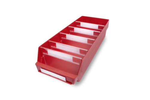 en polypropylène incassable, en rouge. guidages à encoches transversales et fixations au fond permettent de loger des séparateurs transversaux pour un compartimentage des bacs individuel. à bec. avec surface d'étiquetage. résistant à la température de -20 °C à +80 °C. matériau convient pour aliments.