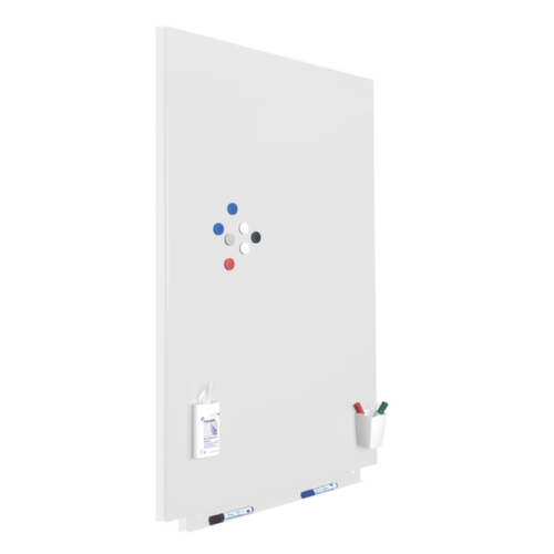 les principales dimensions du Rocada du Rocada tableau Skin Skin en un coup d’œil :surface du plateau avec laquage - alternative abordable pour un usage occasionnel, parfait pour les notes rapides (un bon entretien est très important). surface : magnétique, inscriptible et effaçable à sec pour une utilisation récurrente. Le tableau peut être utilisé sans papier séparé, vous évitant ainsi des frais. noyau de panneau en acier en RAL9003 blanc de sécurité. Sert également de chevalet de conférence. Stockez vos marqueurs et vos accessoires sur le porte-marqueur prévu à cet effet. Ainsi, vous avez les mains libres et tout reste à portée de main. Design épuré, sans cadre, pour une décoration murale élégante et une combinaison aisée avec d'autres modules. pour montage mural.