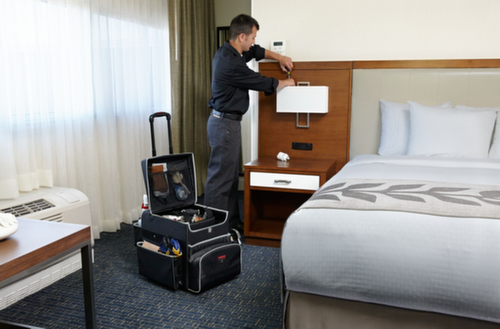 "longDescription": "<h2>Chariot de nettoyage</h2><strong>extrêmement maniable et robuste pour un usage intensif</strong><br><ul><li>Conception compacte pour une utilisation dans les hôtels, la gestion des installations et les activités de nettoyage.</li><li>Absolument durable - avec un revêtement en téflon contre l'eau, l'huile et les taches.</li><li>Facile à déplacer grâce aux roues à roulements à billes et à la poignée télescopique pratique en aluminium.</li><li>Beaucoup d'espace - différents compartiments pour divers ustensiles de travail et caddy amovible</li><li>Flexible et pourtant sûr - les séparateurs peuvent être divisés individuellement et ont un maintien ferme pendant le transport.</li></ul>",