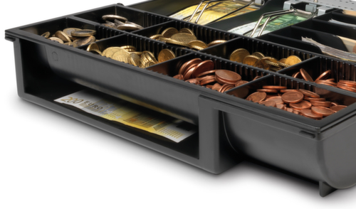 "description": "6compart. à billets/8monnaie, HxLxl 64x358x328mm, plastique/métal",