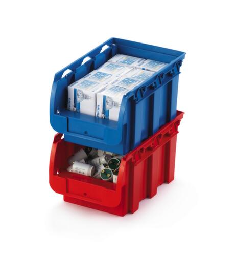 en polypropylène incassable en rouge. résistant à la température de -10 °C à +60 °C. avec poignée barre. ouverture de prise sur face avant. avec porte-étiquettes pour une inscription individuelle et claire. Plusieurs niveaux.