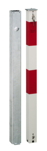 "description": "angulaire, HxlxP 900x70x70mm, alu, rouge/blanc, escamotable, serr.cyl., à sceller dans béton",