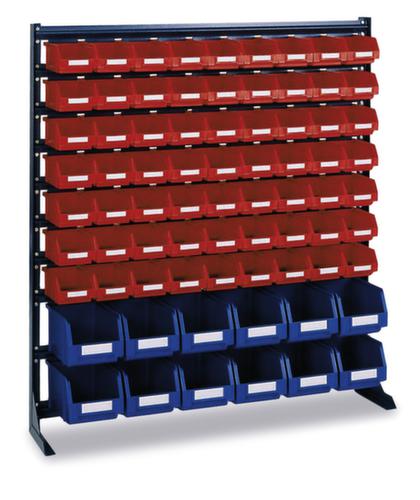 "longDescription": "<h2>Rayonnages verticaux avec bacs de rangement à front ouvert</h2><strong>Rangez les petites pièces bien rangées et à portée de main</strong><br><ul><li>Prêts à l'emploi : bacs de stockage unilatéraux et ouverts, de tailles et de couleurs différentes.</li><li>Les bacs sont faciles à fixer et à détacher lorsqu'ils sont vides ou pleins.</li><li>Résistant à la casse et durable - les bacs de stockage ouverts sont fabriqués en polypropylène.</li><li>Surface résistante aux chocs et aux rayures - Support avec revêtement en poudre</li><li>Matériel de fixation inclus - Boulonnage au mur ou au sol requis</li></ul>L'étagère verticale permet un accès facile et pratique aux marchandises stockées. Les matériaux de travail, les biens et les marchandises peuvent être stockés de manière facilement accessible. Cette étagère verticale est très stable et robuste grâce à l'utilisation de l'acier. L'étagère est également équipée de bacs de rangement à front ouvert, qui permettent un stockage pratique des petites pièces. L'assemblage se fait par un système de vis, qui assure une grande stabilité et est principalement utilisé dans l'installation fixe.<br><br><br><strong>Vous n'avez pas trouvé ce que vous cherchez ?</strong><br>Nous nous ferons un plaisir de vous proposer des solutions sur mesure adaptées à vos besoins. N'hésitez pas à nous contacter pour une planification personnalisée. Notre service clientèle se fera un plaisir de vous conseiller personnellement par téléphone ou directement sur place.<br>",