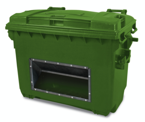 "title": "Bac pour produits d'épandage avec ouverture pour retrait",