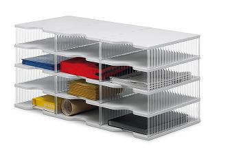 "metaDescription": "Styro Système de classement styropost Trio-Tower - 12compartiments, a. pieds antidérapants, posit. sur table, HxlxP 425x900x400mm, Polystyrène, gris clair/transparent",