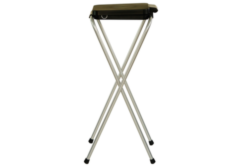Avec couvercle - l’ouverture s’effectue manuellement. anneau en caoutchouc pour la fixation de sac. structure en acier galvanisé argent. couvercle en ABS noir. soubassement patins.