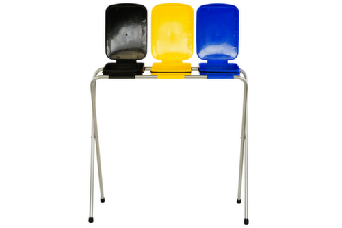 "metaDescription": "support pour sac poubelle - p. 3x120l, HxlxP 860x930x380mm, structure acier argent, couvercle ABS noir, jaune, bleu, patins",