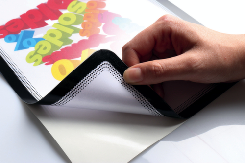 "longDescription": "<h2>Cadre d’information Magneto</h2><strong>avec coins arrondis</strong><br><ul><li><strong>Protection contre les projections d'eau et la décoloration</strong> grâce à un film antireflet</li></ul><br><h3>Le choix vous appartient :</h3><ul><li><strong>Utilisation continue ou temporaire</strong> - dos autocollant ou magnétique</li></ul>",