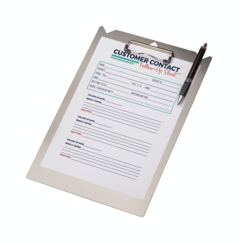 "description": "p. servante d’atelier, p. DIN A4, a. 2 fentes pour stylo, collier de fixation, Hxl 350x240mm, alu, gris",