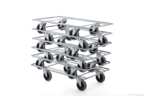 "longDescription": "<h2>Rouleau de transport</h2><strong>Capacité de charge jusqu'à 400 kg</strong><br><ul><li>Convient aux conteneurs Euronorm et aux demi-palettes</li><li>Construction en tube d'acier à coins arrondis, en tôle d'acier ou en fil de fer de 7 mm.</li><li>Avec bord pour un maintien sûr des marchandises transportées</li><li>Peut être empilé pour gagner de la place lorsqu'il n'est pas utilisé.</li><li>Pneus élastiques gris, Ø 100 mm</li></ul>",