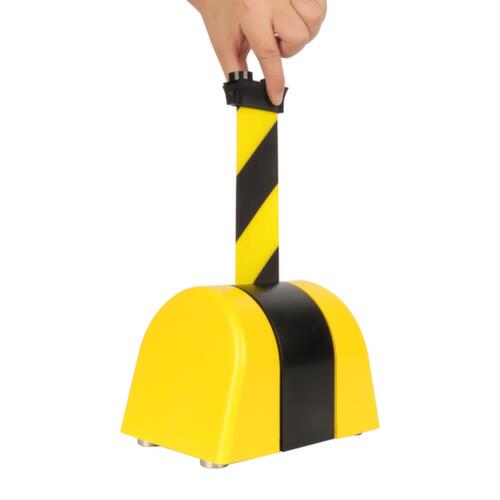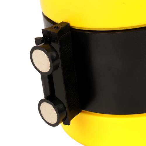 Les principales dimensions du UDOBÄR système de barrières en un coup d’œil :courroie en polyester coloris jaune/noir. sangle se rétracte automatiquement. en plastique. Fixation magnétique.