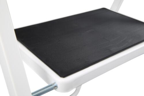 Les principales dimensions de UDOBÄR l’échelle en un coup d’œil :équipé de avec poignée carrée pour un transport facilité et tapis plastiques antidérapants sur chaque marche. application sûre grâce à protection contre l'écartement. Embouts antidérapants en extrémité de lisse. En acier, lisses avec finition époxy résistante aux chocs et aux rayures. Charge max. 150 kg. poids 6 kg.