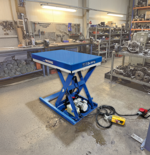 en acier avec finition époxy résistante aux chocs et aux rayures coloris RAL5017 bleu signalisation. exécution de la levée électrique via l'élément de commande manuelle. Par pression d'un bouton déplace ainsi la plateforme à la hauteur de travail ergonomiquement optimale. cisaille simple en acier avec finition époxy résistante aux chocs et aux rayures en RAL5017 bleu signalisation. structure acierrigide. consommation d'énergie 0,37 kW. alimentation électrique 400 V/50 Hz. câble longueur 3,5 m. indice de protection IP54 : la poussière se dépose à l'intérieur, projections d'eau dans toutes les directions. classe d'isolation F. longueur x largeur 900 x 600 mm.