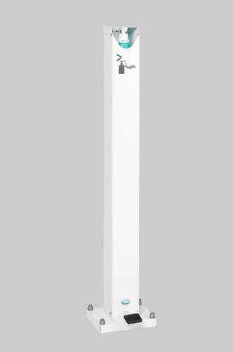 convient pour le en intérieur et en extérieur couvert. Convient pour secteurs alimentaires et hygiéniques. commande par pédale. avec avec porte-bouteille, serrure et clés. verrouillable avec serrure de sécurité. À cheviller. en acier galvanisé avec finition peinture époxy antichocs et antirayures coloris RAL9016 blanc signalisation.