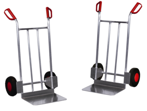 "title": "VARIOfit Diable de manutention en aluminium avec pelle particulièrement large, force 200 kg, caoutchouc plein bandage",