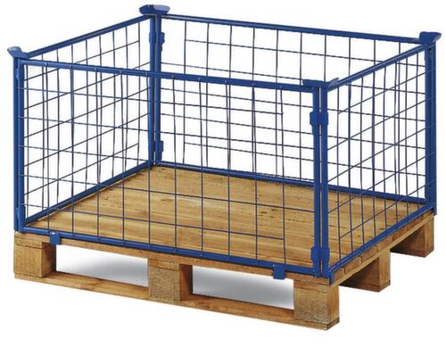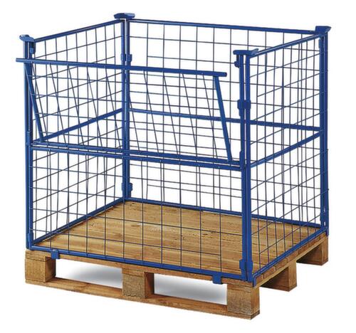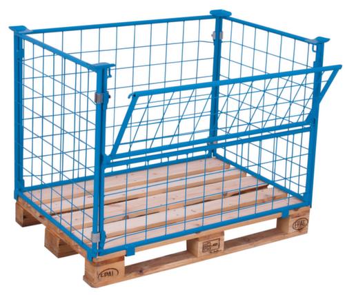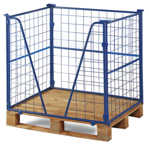 "description": "paroi treillis, un côté ouvert, capacité de gerbage 750kg, HxLxl 1600x1200x1000mm, p. palette Lxl 1200x1000mm, H utile 1600mm, RAL 5012",