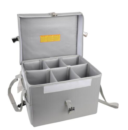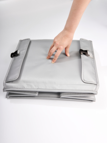 les principales dimensions du VLITEX du VLITEX conteneur pour piles XL XL en un coup d’œil :récipient de sécurité en tissu de verre en gris. matériau extrêmement robuste et antidéflagrante grâce au haut degré de résistance à l'éclatement. Les parois multicouche spéciales confèrent une résistance aux chocs exceptionnelle et offrent ainsi une protection contre les dommages mécaniques aux batteries. verrouillable avec fermeture auto-agrippante combinée à des boucles robustes pour une fermeture fiable. Électrifiable par l'ouverture anti-fumée spéciale servant de traversée de câble. Stockage peu encombrant, car facile et rapide à ouvrir et à rabattre si besoin. Pour le intérieur et extérieur.