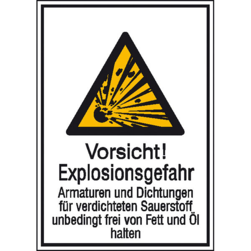 $B panneau d'avertissement combiné $S $M « Prudence ! Risque d'explosion robinetterie et »