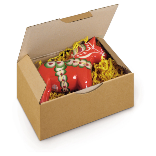 Les principaux détails en un coup d'œil :Pour colis jusqu'à 20 kg. Stabilité élevée grâce à la triple épaisseur du carton sur les deux côtés longs. 2 clapets latéraux pour fixer et protéger la marchandise. Agit Résiste à l'humidité et aux fluctuations de température. verrouillable avec couvercle rabattable avec languette de fermeture.