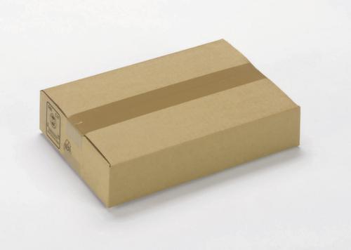En carton ondulé avec enveloppe extérieure en papier kraft coloris marron, recyclable. en matériau 70 % recyclé.