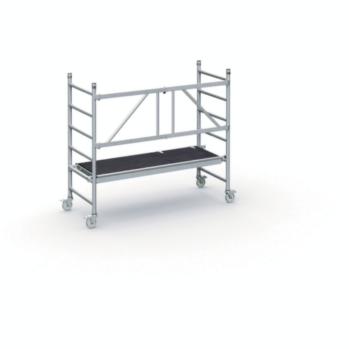 "longDescription": "<h2>Échafaudage mobile pliable</h2><strong>travailler en toute sécurité à de grandes hauteurs</strong><br><ul><li>Utilisation simple d'une seule main grâce à un bouton de verrouillage robuste.</li><li>Équipé de plinthes pour éviter que les outils ne tombent.</li><li>Sécurité maximale grâce au garde-corps monté</li><li>Position sûre grâce au stabilisateur</li><li>Facile à déplacer grâce à 4 roulettes pivotantes</li><li>Léger et robuste - cadre en aluminium et plate-forme en contreplaqué collé.</li></ul>",