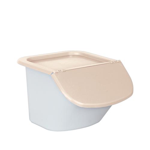 en polypropylène incassable. récipient en blanc et couvercle en beige. parois : surfaces lisses sans soudures pour un nettoyage facile. convient pour pour produits en vrac de toute nature. verrouillable avec couvercle rabattable. Le couvercle peut également être ouvert lorsque plusieurs bacs sont empilés. Le contenu du distributeur peut être facilement prélevé grâce à l’ouverture de prise inclinée. convient pour aliments.