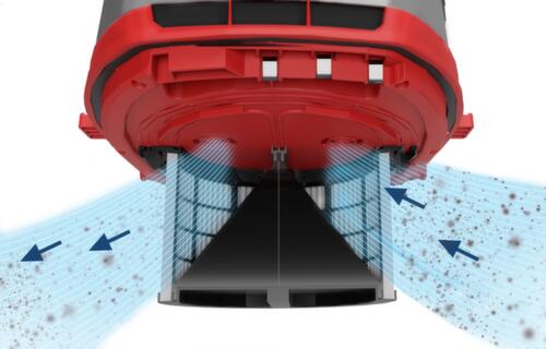 "value": "<h2>Nettoyage du filtre breveté</h2><p>Le filtre à cartouche HEPA est constitué de deux chambres de filtre séparées, nettoyées l’une après l’autre <strong>automatiquement toutes les 45 secondes</strong>. Le débit d’aspiration et la puissance d’aspiration restent constamment élevés même pendant le nettoyage, ce qui garantit une aspiration permanente. Le rétrolavage à l’air assure que les pores fins du filtre soient dépoussiérés en continu et sans laisser de résidus. Le processus est effectué <strong>de manière incroyablement silencieuse</strong>, ce qui rend l’utilisation particulièrement agréable. En outre, vous gagnez du temps et économisez de l’argent grâce à <strong>l’absence d’entretien et de nettoyage</strong>.</p>"
