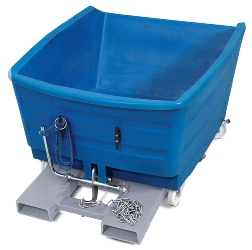 "longDescription": "<h2>Benne basculante pour fortes charges</h2><strong>notamment pour les déchets lourds et les gravats de construction</strong><br><ul><li><strong>Facile à nettoyer</strong></li><li><strong>Résistance élevée</strong> à de nombreuses substances agressives</li><li><strong>Déverrouillage confortable</strong> par palan à câble depuis le siège conducteur</li><li><strong>Pour un procédé de basculement freiné</strong> équipé de vérins pneumatiques spéciaux</li><li>Respect de l'environnement et stabilité dimensionnelle - en polyéthylène résistant aux chocs.</li><li><strong>Facile à déplacer</strong> - châssis avec fourreaux de fourches et 2 roulettes pivotantes et 2 fixes</li></ul>",