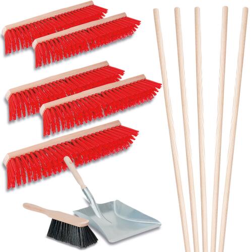 "metaDescription": "Ensemble de balais, brosse à main et pelle à poussière, largeur de travail 600 mm - 5xbalai de voirie, 5xmanche, 1xset de balayage, l de travail 600mm, manche bois, p. tous types de saleté sur sols rugueux",