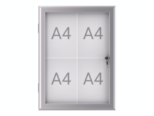 "description": "p. 16xDIN A4, HxlxP 1304x956x28mm, portrait, paroi arrière acier, porte à battants, cadre alu",