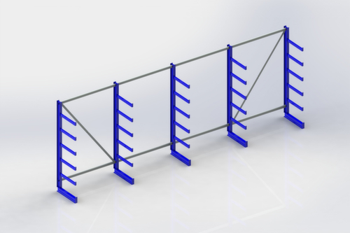 les principales dimensions du META du META rayonnage cantilever Atlas ST Atlas ST en un coup d’œil :utilisation unilatéral - conçu pour un montage mural. 6 niveaux de stockage. 5 niveaux avec bras, avec rebord antichute. force par bras 200 kg. Bras de longueur identique, positionnement droit. profondeur utile 500 mm. structure en acier. montants décapé au jet de sable et finition peinture époxy en RAL5010 bleu gentiane. bras décapé au jet de sable et finition peinture époxy en RAL5010 bleu gentiane.
