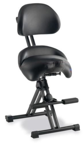 "description": "rabattable, siège-selle, assise similicuir noir, assise H 590-730mm, dossier similicuir noir, repose-pieds, structure acier RAL9005",