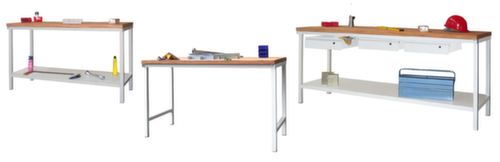 "title": "PAVOY Établi avec piètement en gris clair et panneau multiplis hêtre, 8 tiroirs, 1 tablette, RAL7035 gris clair/RAL7035 gris clair",