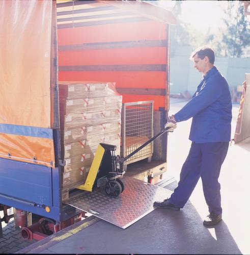 "longDescription": "<h2>Pont de franchissement</h2><strong>pour surmonter les écarts lors du chargement et du déchargement</strong><br><ul><li>Facile à transporter - avec des trous de préhension</li><li>Pas de glissement - angle d'arrêt pour la fixation</li><li>Travail en toute sécurité - avec une surface de roulement antidérapante</li><li>Léger et robuste - fabriqué en aluminium</li></ul>",