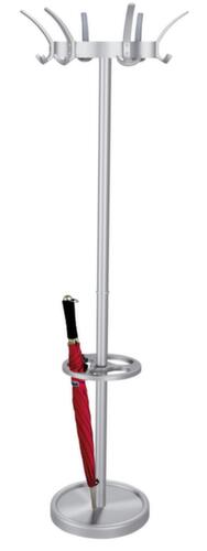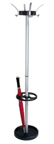 "description": "HxØ 1800x500mm, 8pat. chapeaux/16crochets portem., porte-parapluies/égouttoir, acier, aluminium argenté / noir",