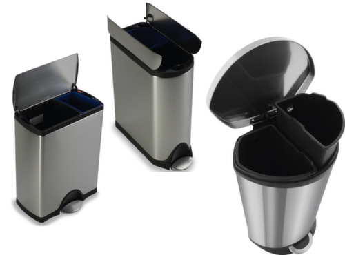 "title": "Poubelle à pédale acier inoxydable avec 2 unités collectrices, 2 x 22 l",