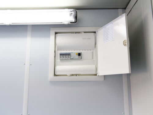 2 lampes, 2 interrupteurs, 4 prises de courant à contact de protection, 2 prises de chauffage