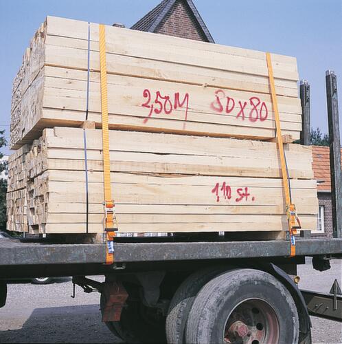 "description": "1partie, av. levier à rochet, Lxl 8000mm x50mm, orange",