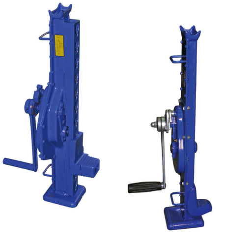"description": "DIN7355, Capacité de levage max. 10 t, Griffe fixe ou réglable, avec 2 manivelles différentes",