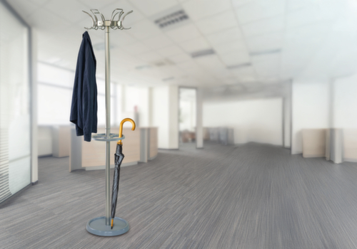 "description": "HxØ 1800x400mm, 6crochets portem., porte-parapluies/égouttoir, acier/marbre, finit. peinture époxy, argent",