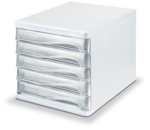"metaDescription": "helit Farbige Schubladenbox the wave - 5 Schublade(n), HxBxT 250x265x340mm, Kunststoff, weiß, Schubladen glasklar",