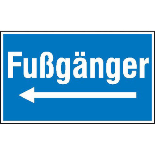 Symbol/Text: Fußgänger (mit Richtungspfeil nach links). Richtungsangabe über Pfeil links.