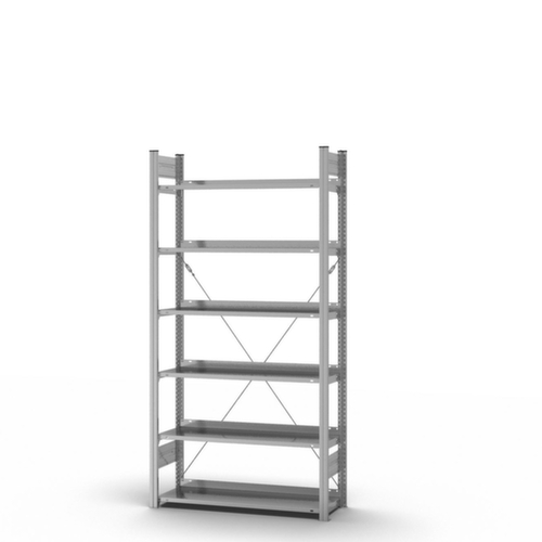 "metaDescription": "hofe Fachboden für Steckregal, Breite x Tiefe 1000 x 300 mm - f. Aktenregal, BxT 1000x300mm, Fachl. 60kg, m. Anschlagkante, verzinkt",